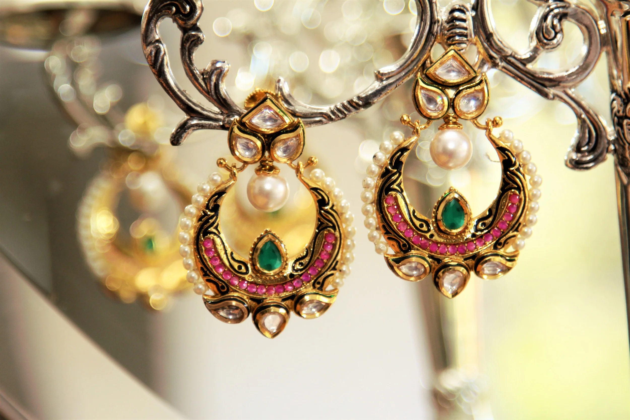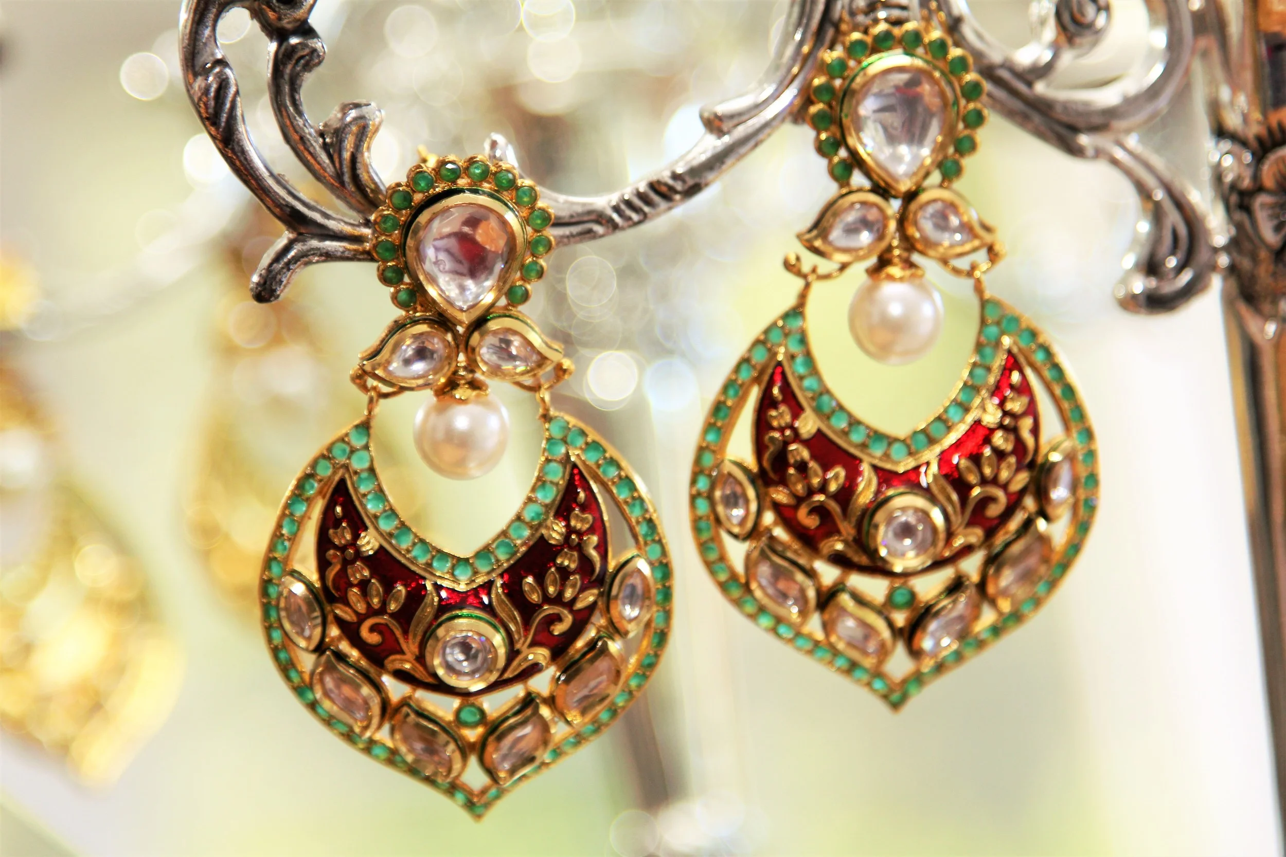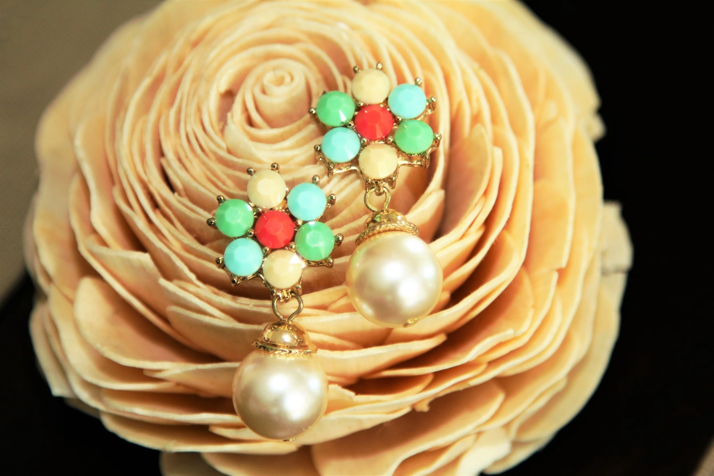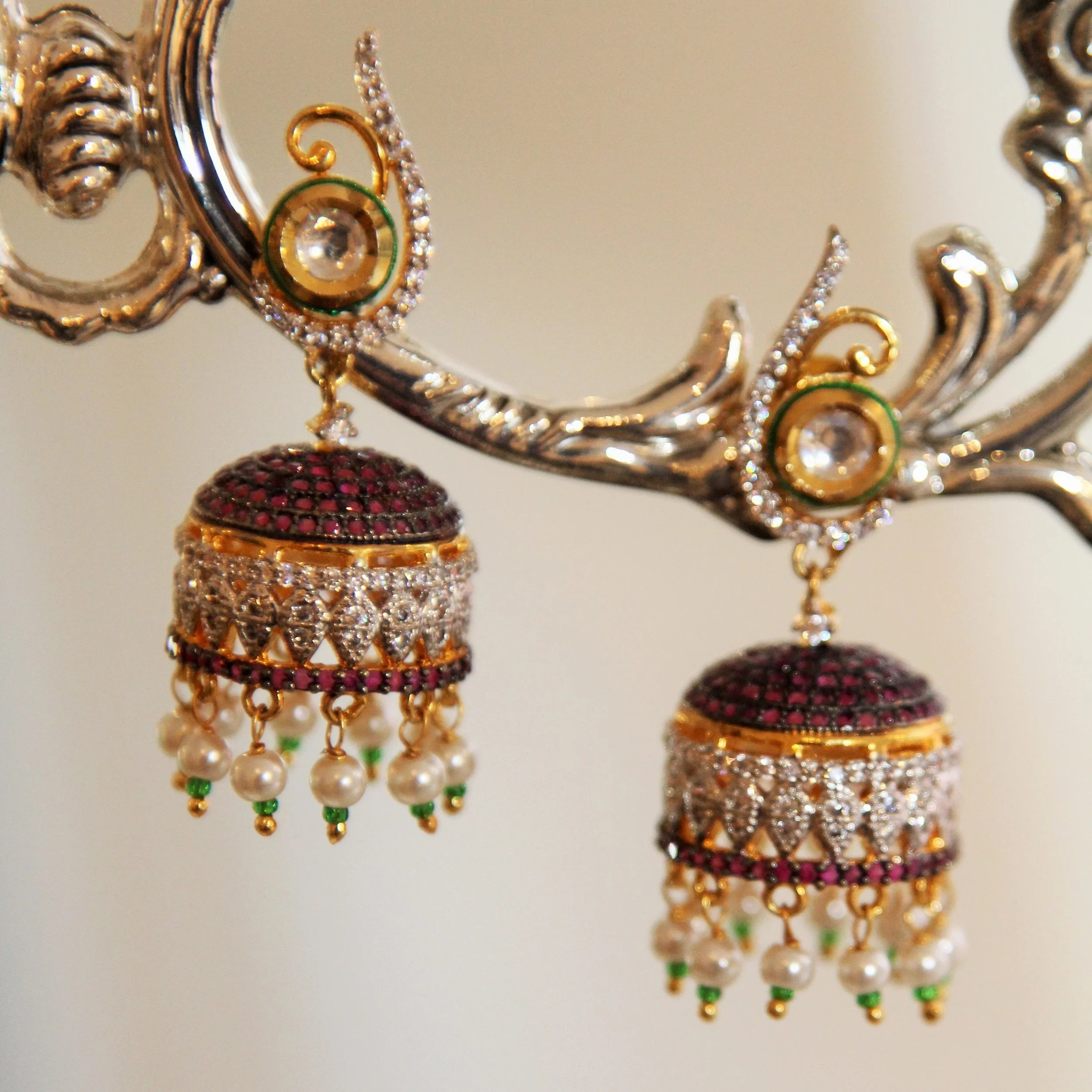 Pink, Green, Polki and Pearls - 'Dream' Statement Earrings